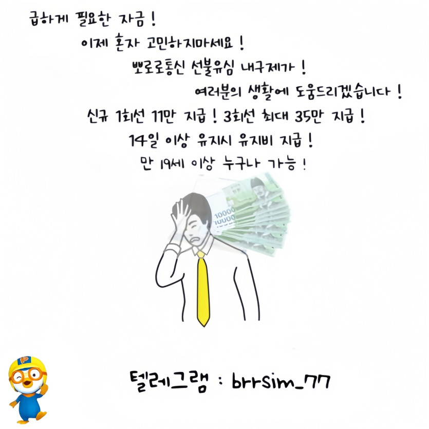 텔레그램:@brrsim_77 선불유심내구제 뽀로로 통신 돈 드려요 !! 바로 개통 → 개통 확인 후 바로 정산1회선 11 / 최대 35가능 소개시 소개비 3~5지급 비대면당일소액급전뽀로로 통신 선불유심 매입 무직자기대출소액대출 급전땡기는방법 급전빌리는곳추천 급전소액해드려요 급전선불유심내구제소액